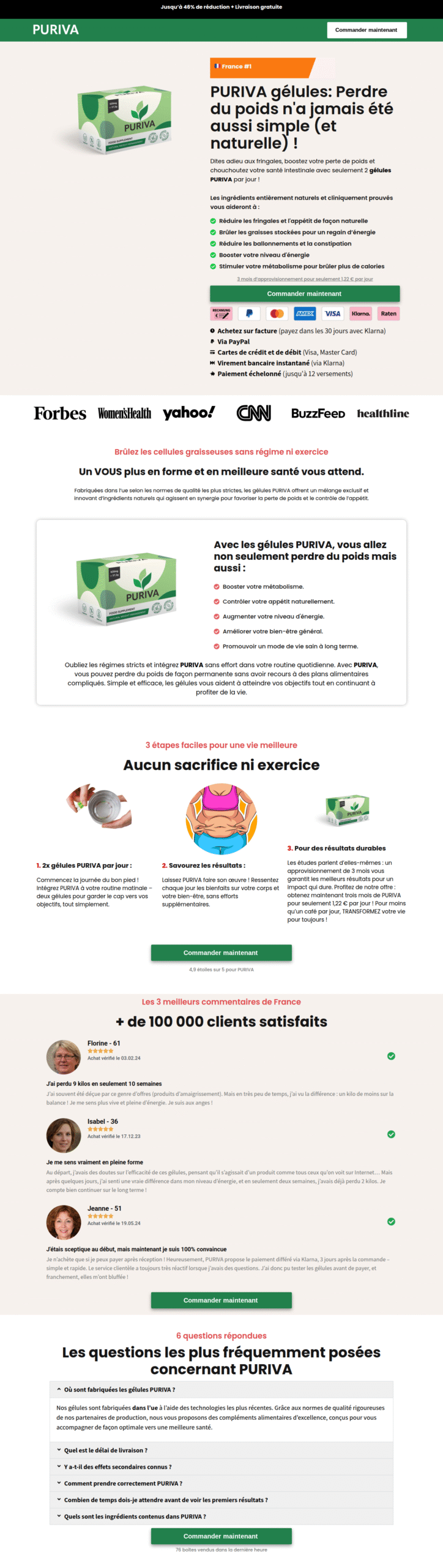 Je n’achète que si je peux payer après réception ! Heureusement, PURIVA propose le paiement différé via Klarna, 3 jours après la commande – simple et rapide. Le service clientèle a toujours très réactif lorsque j’avais des questions. J’ai donc pu tester les gélules avant de payer, et franchement, elles m’ont bluffée !